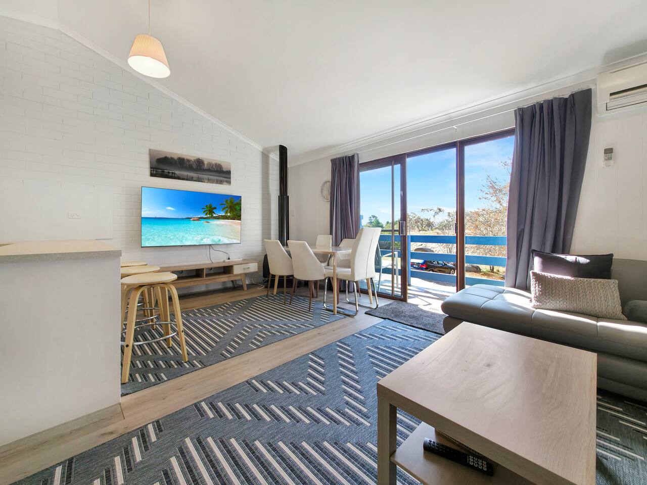 Stay in the heart of Jindabyne in this newly renovated split-level apartment, just a short stroll to pubs, shops, cafés, and the lake. Perfect for families and groups exploring the Snowy Mountains, with easy access to Thredbo, Perisher & Kosciuszko National Park. ⭐ Large Smart TV in living + Smart TVs in two bedrooms + WiFi ⭐ Air conditioning & heating ⭐ Ski & Bike Storage ⭐ 2 bathrooms ⭐ Walk to town centre & lake ⭐ 30–40 min drive to ski resorts Book your Snowy Mountains stay today!