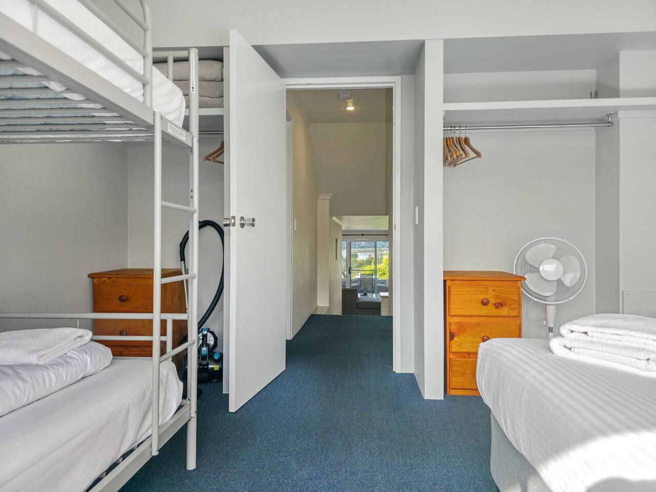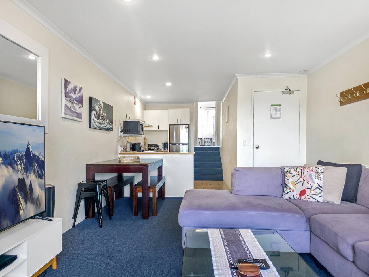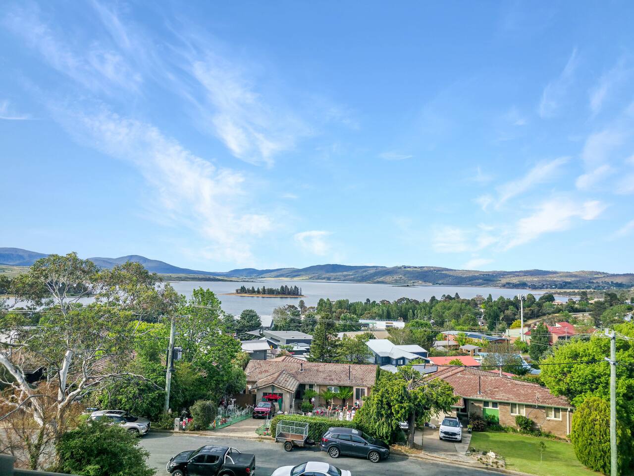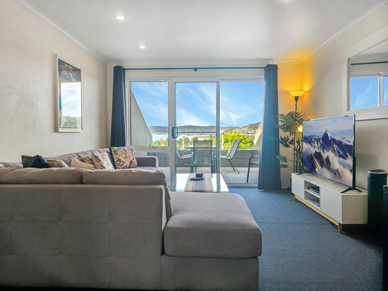 Wake up to stunning lake views in this modern split-level apartment, located in the heart of Jindabyne. Whether you're visiting for skiing, hiking, or a relaxing lakeside retreat, this centrally located apartment is the perfect base for your adventure. Why You’ll Love It: ✅ Prime Location – Only a 5-10 min walk to Jindabyne’s best cafes, restaurants, bars, and the lake. ✅ Unbeatable Views – Enjoy breathtaking lake and mountain views from both private balconies. ✅ Outdoor Relaxation – Soak up the scenery with comfortable outdoor seating on the balcony's. ✅ Spa Bath Bliss – Unwind after a day on the slopes in the luxurious spa bath. ✅ Cozy in Winter – Electric heaters in every room ensure warmth and comfort during chilly nights. ✅ Split-Level Design – Spacious and comfortable layout, perfect for families, couples, and groups. ✅ Master bedroom on the top level with ensuite bathroom, spa bath and private balcony off bedroom ✅ Modern Comforts – Stay entertained with a Smart TV and connected with WiFi. ✅ Coffee Lover’s Dream – Enjoy a fresh brew with the Espressotoria coffee machine. ✅ Undercover Parking – Secure undercover carpark, so you’re ready for any season. ✅ Bathrooms - Two bathrooms for ultimate convenience. ✅ All bed linen and towels included. ✅ Includes tea, coffee, sugar, cooking oil, salt and pepper in the kitchen. ✅ Includes body wash, shampoo, conditioner, hand wash and 3 toilet rolls in the bathroom. Perfect for: ✔️ Families & groups looking for space and comfort ✔️ Couples wanting a romantic getaway with lake views ✔️ Friends planning an adventure in the Snowy Mountains With its breathtaking views, spa bath, and unbeatable location, this apartment offers the ultimate Jindabyne experience. Book now and start your Snowy Mountains adventure! Master bedroom - King bed with ensuite spa bath and private balcony Bedroom 2: Tri-bunk (Double + Single) & 1 Single.